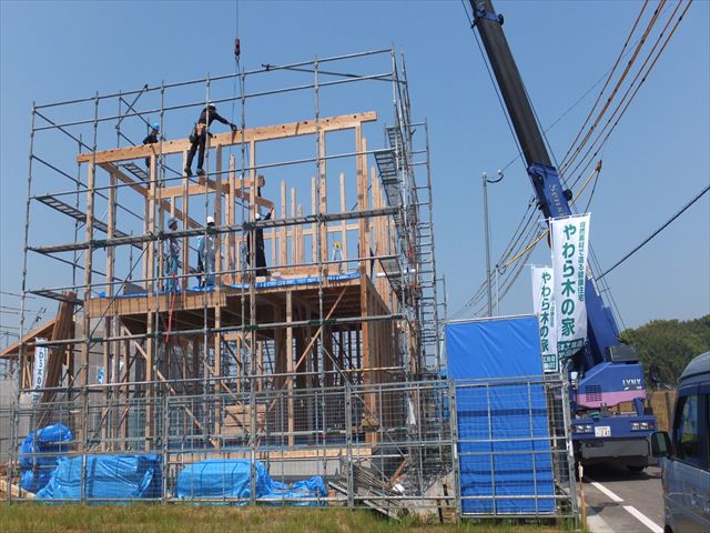 こんにちは、坂本工務店です。朝の肌寒さが嘘のように暑くなりましたね~~。娘は今日もがんばって幼稚園に行きました。5月13日、O様邸がついに上棟しました!心配していた前日の雨もすっかり上がり、…